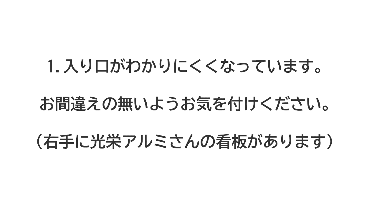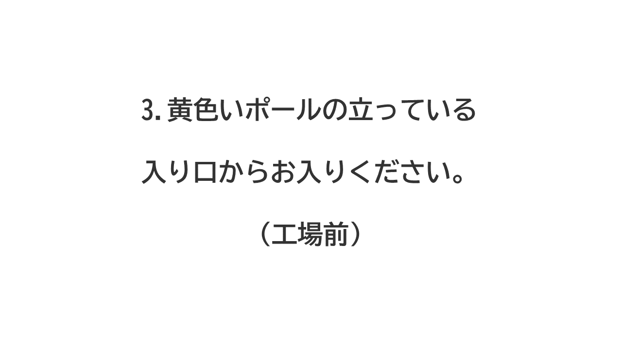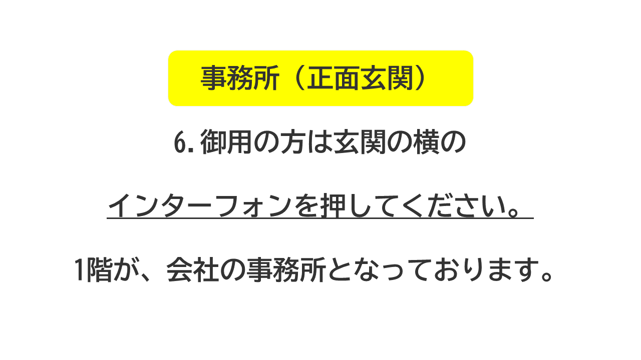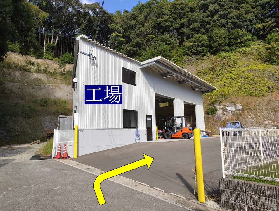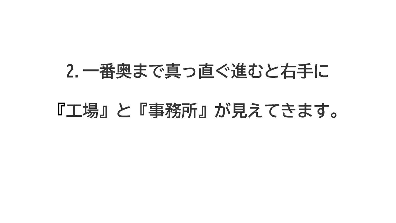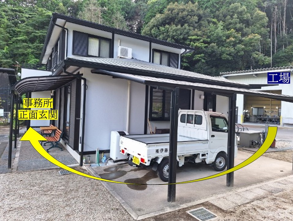 事務所に御用の方は、工場向かいに位置してます、「一軒家」までお越しくださいませ。事務所玄関は、反対側にあります。