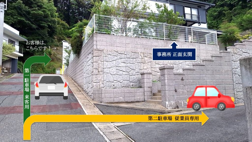 第一駐車場は、来客用となっております。お越しいただく際は、第一駐車場にてご駐車お願いします。