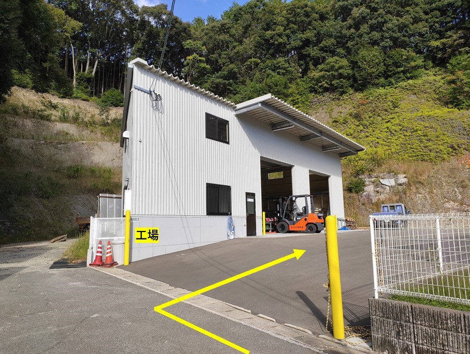 | ■工場側の出入口からお入り頂き、駐車をお願い致します。 |